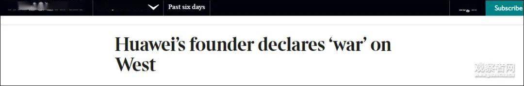 而此文一经其他媒体转载,火药味更加浓重。BBC新闻网称华为发起了“媒体闪击战”;《泰晤士报》网站则叫嚣“华为创始人对西方宣战”;澳媒《每日电讯报》干脆直接说“华为威胁要让西方血流成河”。