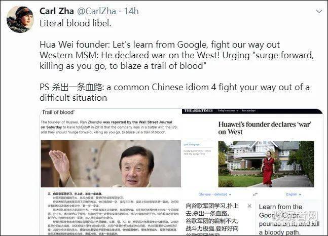 而这句“杀出一条血路”则被西方媒体误解为宣战口号。其实不仅是媒体,一些自称是“中国问题”专家的西方学者,近日也在社交媒体上转载文章,原封不动照抄《华尔街日报》的译文,叫嚣这是“暴力”。其中还不乏有亚裔记者转发了这篇文章。
