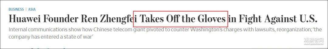 此文一出,立刻引发诸多对华偏执狂的共鸣。加之近期华为遭遇“芯片供应链遭打压”、“孟晚舟案进展不利”等事件,文章渲染任正非大有对美国反攻之势。而实际上《华尔街日报》正以“任正非撸起袖子准备和美国干架”为标题,甚至还在暗示任正非要“给女儿报仇”。