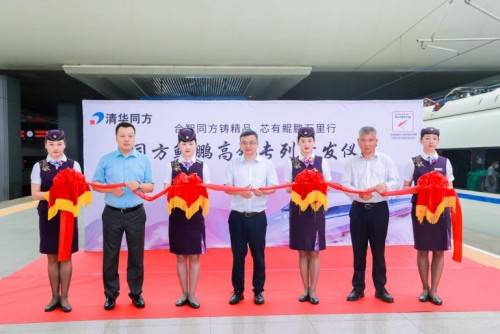 三方领导共同剪彩,标志着同方鲲鹏高铁专列正式起航。
