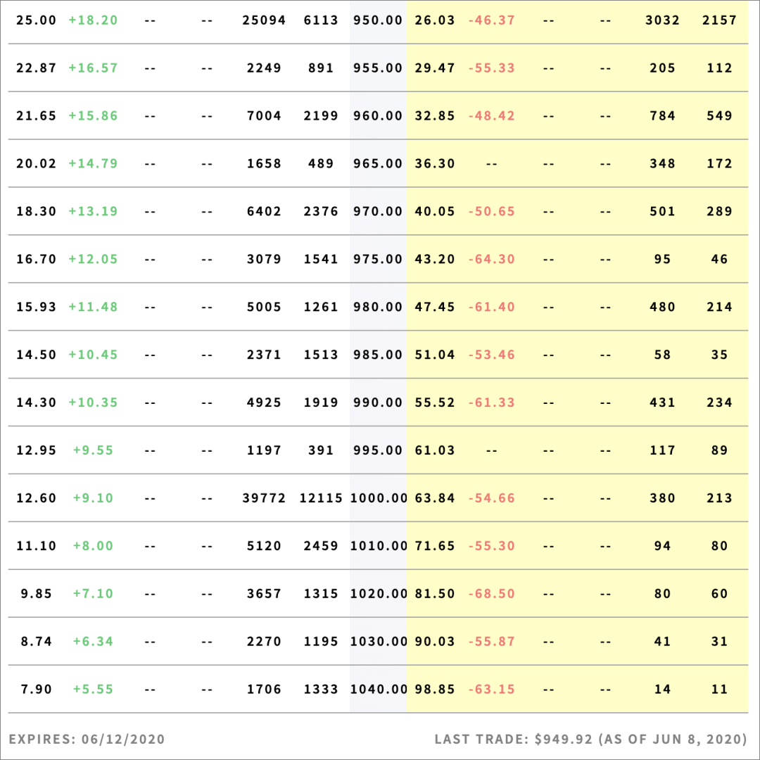 而在即将交割的6月12日期权上,900美元的卖空合约在大量平仓,而1000美元的买入期权则是以3.97万张合约迅速上量,持有合约甚至达到了1.2万张,远远高于任何一个卖空价格。