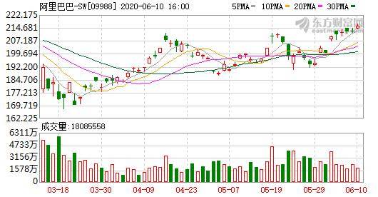 在6月9日阿里加码搜索的消息问世之后,阿里的股价更是一路飙升。