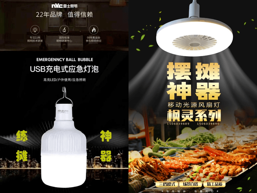 地摊经济的火热不仅为消费者带来便利、给城市注入活力,也为夜间灯光业务带来发展新契机。近期,专注于城市空间照明等景观照明领域的豪尔赛集团表示,公司将积极响应国家政策号召,关注和参与相关夜间经济的建设;佛山照明、雷士照明等企业看准市场潜力,推出几款“练摊神器”,包括摆摊灯、USB充电式应急灯泡和移动光源风扇灯等产品,解决摊位供电、散热的痛点,能够适用各类“摆摊场景”。