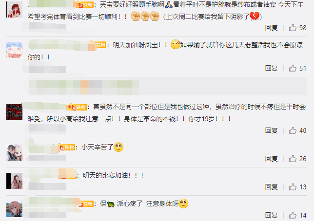 从官博晒出的照片来看,tian在做治疗的时候还是比较痛苦的。当时还有不少网友安慰tian,甚至还希望FPX保持好状态参与比赛。但是FPX战败后,评论区的画风一转,tian也只能承受网友们的指责与谩骂了。