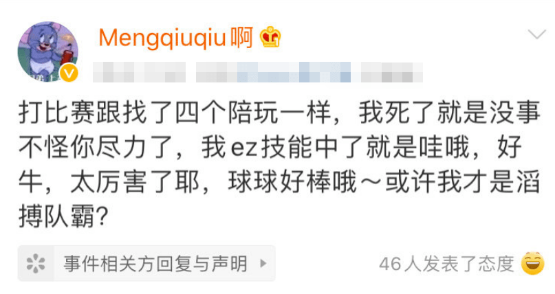 Qiu皇在赛后更新动态,还说到自己就像和四个陪玩一起打游戏。虽然有不少网友还在嘲讽Qiu皇的操作,但是无可厚非的是,他已经做得很好了。