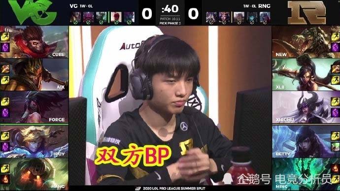 这一场RNG的阵容拿得很好,打野豹女可以压制皇子,线上操作得当可以全线压制VG。反观VG的阵容是拿了一套中后期单带和团战都不错的阵容。