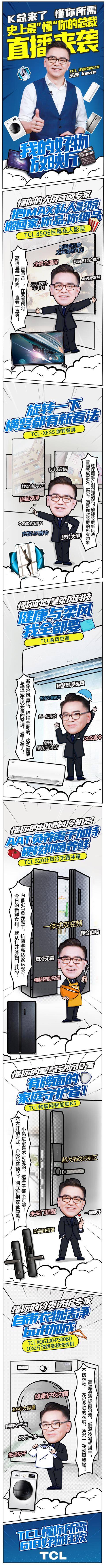 当然,错过了上次天猫直播的用户也不用着急。6月10日晚8点,k总还会在TCL京东直播间继续给大家送福利,期间会有每15分钟送出智慧科技家电免单,五折家电、618元神券等多重福利。后续也还会有苏宁场直播,大家赶紧拿小本记下来,持续关注TCL近期的总裁直播活动,错过这些豪华福利就要等明年了!