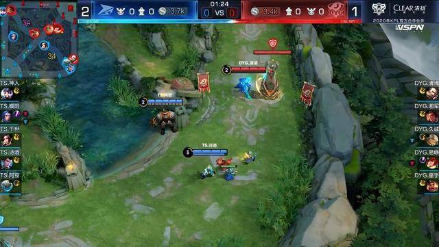 这局DYG前期也是优势,清清老夫子极其成功地限制了对方,直到暖阳赵云一波极限操作打残易峥孙尚香,成功带领队伍开始翻盘。
