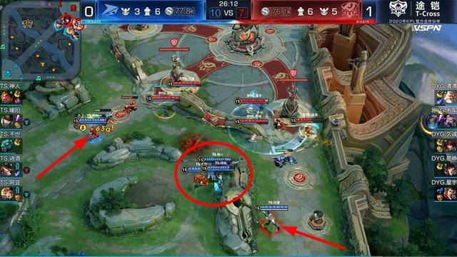 开局几分钟,DYG三路全崩,暖阳橘右京到处出节奏,即使DYG集结三人抓了一波TS发育路帮助曹操发育也无济于事,老虎体系节奏已崩,即使经济追上来也打不过对方射核体系。