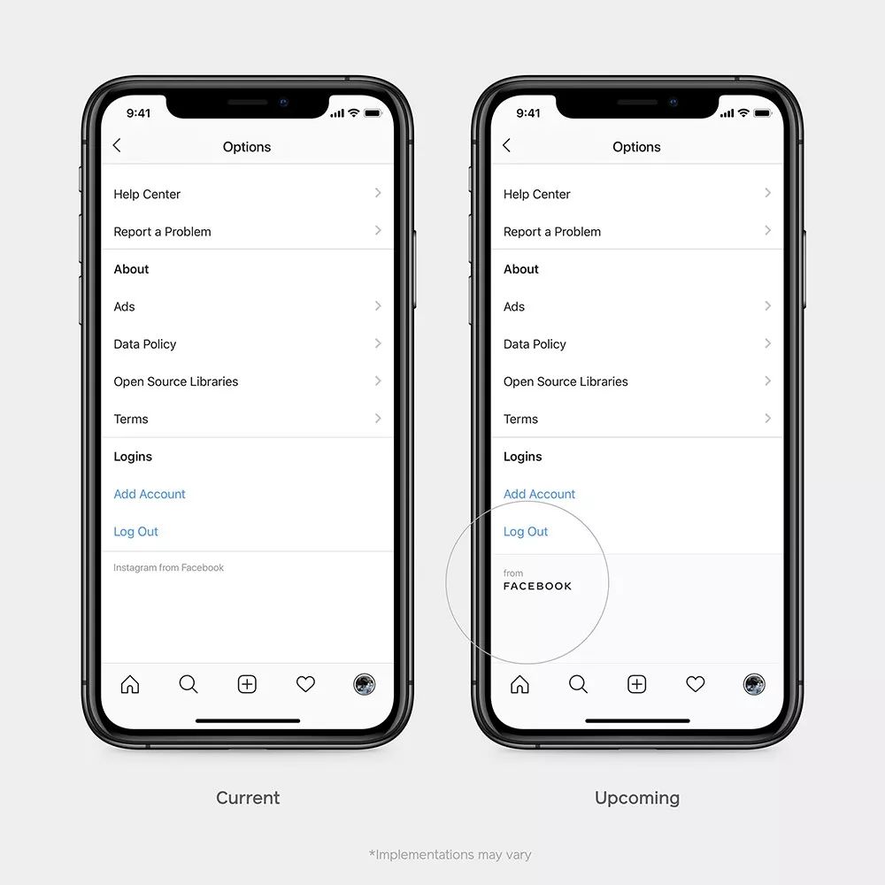不同于以往标志性的蓝色小写字母风格,该标志以全新的字体显示“Facebook”的所有大写字母,并匹配不同产品的颜色,这些颜色分别代表了该公司的子品牌,其中,蓝色代表Facebook,绿色代表WhatsApp,粉红色代表Instagram等等。