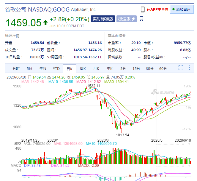 其中,截至发稿,苹果暴涨1.81%,总市值超过1.5万亿美元。据悉,苹果公司向硅谷总部员工发出通知称,该公司首批员工将从6月15日开始复工。但他们也强调,多数员工至少在几个月内无法复工。