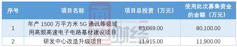 公司IPO拟募集资金9.2亿元主要用于年产1500万平方米5G通讯等领域用高频高速电子电路基材建设项目。
