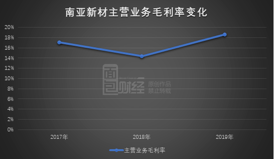 2017年至2019年,南亚新材主营业务毛利率分别为17.04%、14.37%和18.60%,波动较大。