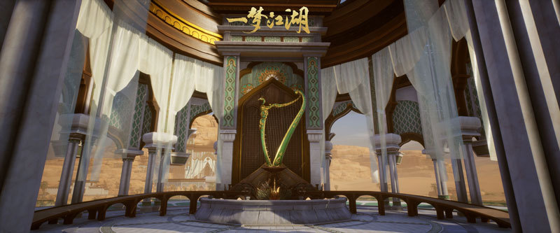 唐明梓所在的梵音殿,是伽蓝弟子们日常切磋武学,研经曼舞之处。在梵音殿的礼堂中央,立着一架巨大的竖琴,据伽蓝弟子透露,它似乎与伽蓝的一位故人有关,不知其中有何玄机。