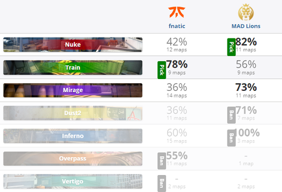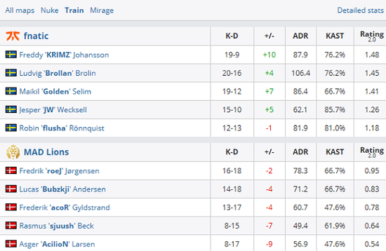fnatic 1-2 MAD Lions (Nuke 7-16;Train 16-5;Mirage 10-16)