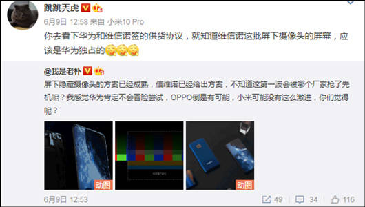 (文/观察者网 一鸣)近日,知名互联网资讯博主 @跳跳兲虎 爆料,华为有望独占维信诺的屏下摄像头方案。