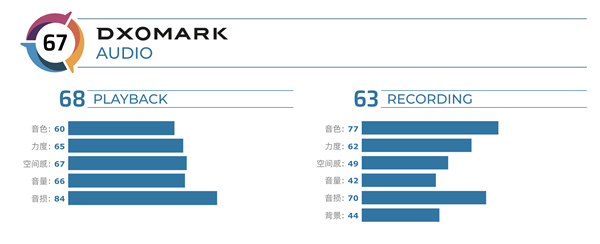具体到小项,一加8 Pro播放取得了68分,其中音损得分最高达84分;录音取得了63分,其中音色得分最高为77分。