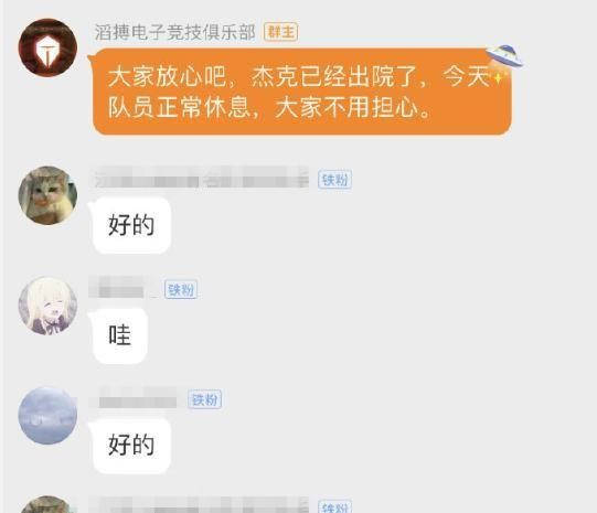 消息来源非常官方,因为粉丝们非常担心阿水的情况,TES的官方就在自己的粉丝群发消息,称,杰克已经出院了,今天队员正常休息,让大家不要担心。