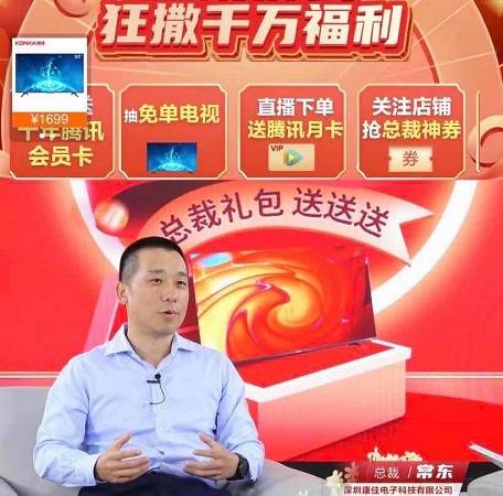 相同之处在于,首先都是“流量平台+公司直播间”,康佳在深圳总部大厦,TCL在惠州总部,创维也在深圳总部,依托公司场景;二是采取“总裁+明星(或网红、KOL)”的搭配,还有主持相助,常东联手电商主播周少,王成联手女演员汤晶媚,王志国联手人气歌手汪苏泷,更贴近年轻粉丝;三是多种优惠手段并用,总裁价、发神券、抽免单、抽奖,有足够的价格刺激。