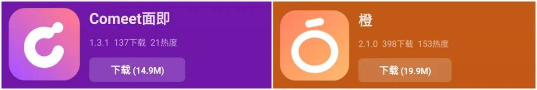 首先是真人恋爱交友 App “ 橙 ” 和线下约会交友 App “ Comeet 面即 ” ,感觉这俩货的定位差的不多啊。。。