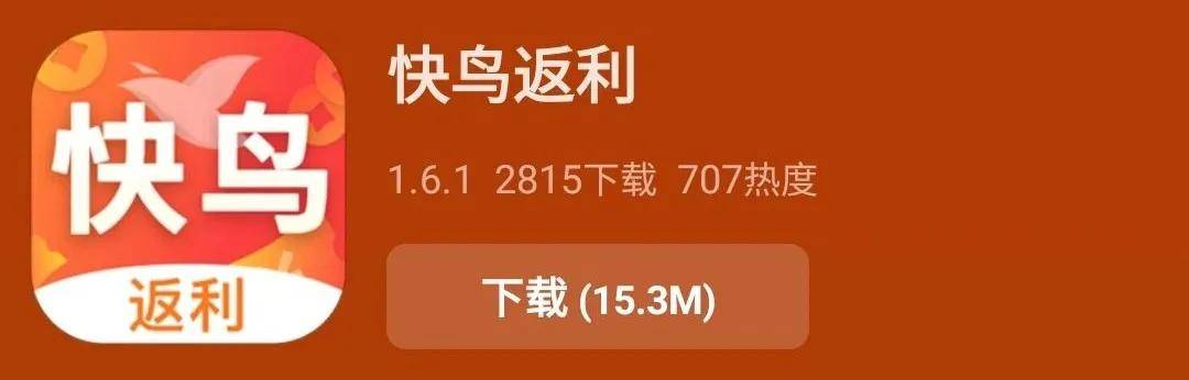 然后是购物返利 App “ 快鸟返利 ” ,这个应用如其名,是一个主打返利的 App ,这个倒挺好理解的,就是不知道和别的平台比返利情况咋样。