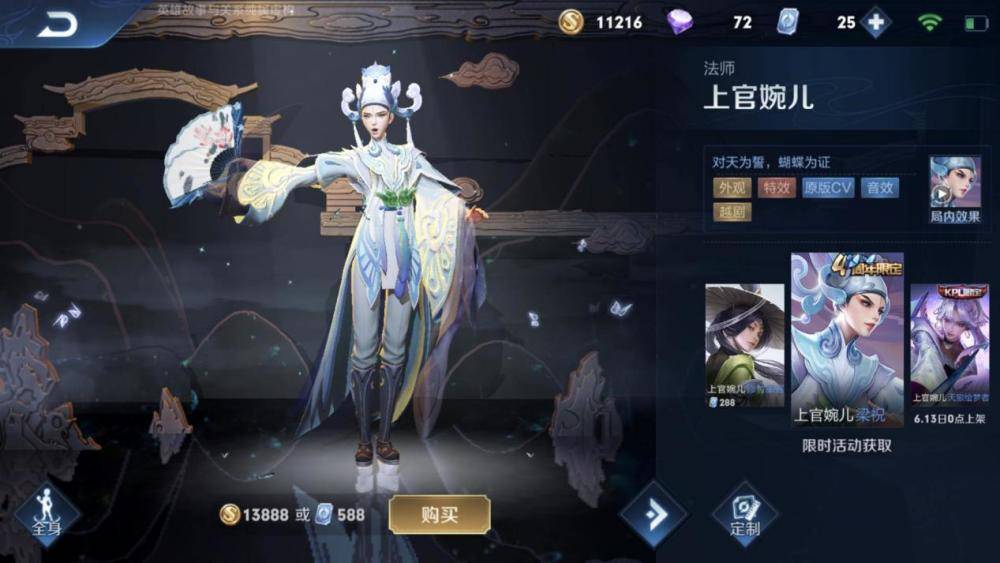上官婉儿的皮肤还有另一款限定,也就是四周年限定皮肤梁祝,这款皮肤作为史诗级皮肤作为活动赠送给玩家,虽然是一款限定免费赠送皮肤,可在皮肤制作质量上真的不输于KPL限定的品质。而且从皮肤主题来说,四周年加上梁祝的国民主题,这分量也是丝毫不输于KPL的。