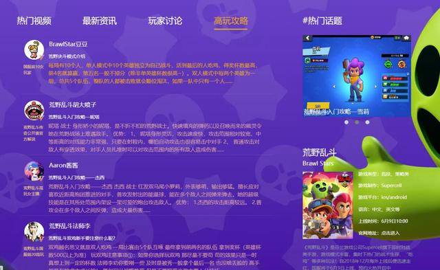 殊不知,作为游戏界标杆的斗鱼直播在《荒野乱斗》国服公测以后,便率先成立直播专区,广邀《荒野乱斗》的高端玩家入驻平台。截止到目前,国服积分榜前十名玩家中便有九名玩家是斗鱼主播,而这些主播也将通过直播的形式来为广大水友讲解不同游戏模式的英雄搭配以及英雄的相关玩法。当然除了直播内容外,玩家们还可以通过直播间下方的高玩攻略、热门视频、玩家讨论等版块最先学习到英雄玩法,帮助你从荒野小白蜕变成乱斗大佬!