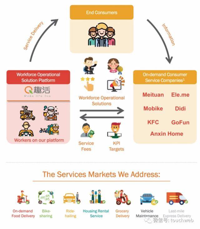 趣活为包括美团、饿了么、滴滴等大型生活服务平台提供灵活用工解决方案;为生活服务行业企业客户提供第三方业务管理平台。