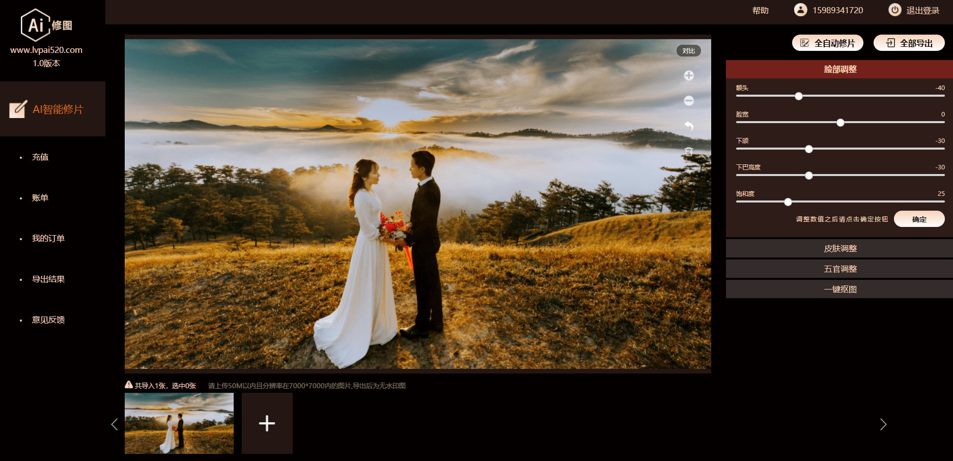 为全球摄影服务产业链创造价值,是旅拍云成立的初心。AI智能修片系统,作为旅拍云2020年重点推出的项目,是行业内少有的专业批量修图平台,目前广泛适用于传统影楼、摄影工作室、独立摄影师。它整合了全球数家知名AI引擎公司资源,以便捷、高效、精准批量修图为目标,内置全自动修片、智能修图、精细美颜、一键滤镜、即修即导等强大功能,直击当下摄影行业人工成本重、修图效率低、客户等待时间长等痛点,为摄影行业源源注入活力。