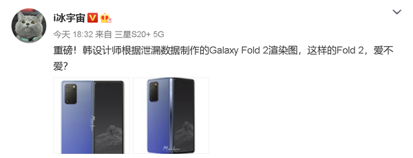 转眼时间来到了6月月份,距离下半年手机圈的“重头戏”来临没多长时间了。根据往年的情况来看,三星将在今年8月份推出下半年的旗舰机型,包括Galaxy Fold 2。6月11日,专业爆料三星新机“三百年”的数码博主@i冰宇宙 在微博上放出了Galaxy Fold 2的渲染图。从放出的渲染图来看,三星Galaxy Fold 2不仅非常好看,还十分精致。
