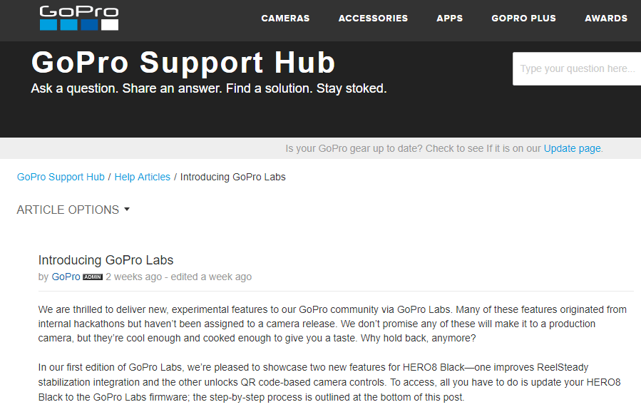 尝鲜GoPro实验室的新功能非常简便,只需将HERO8 Black更新至GoPro Labs最新固件,固件地址为GoPro官网社区GoPro Support Hub页面,自定义二维码的教程则在github的GoPro Labs页面。