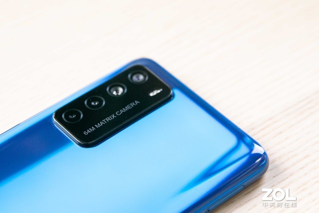 荣耀 Play4的后置摄像头模组采用了目前主流的矩阵式设计,其位于机身背面的左上方,在双手横向握持手机时并不会对左手的握持感产生影响。荣耀 Play4在机身边框的电源键设计上也采用了实用的指纹电源二合一按键设计。