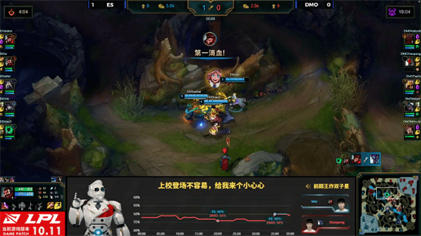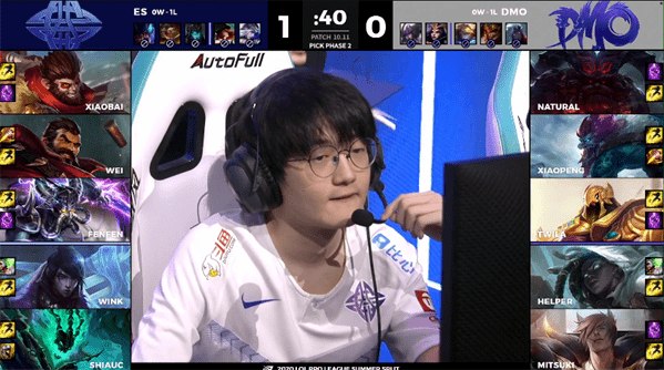 本局比赛ES选择:上单猴子(小白)、打野男枪(Wei)、中单卡萨丁(fenfen)、ADC厄斐琉斯(Wink)、辅助锤石(小C),DMO选择:上单奥恩(阿乐)、打野巨魔(小鹏)、中单沙皇(Twila)、ADC赛娜(Helper)、辅助腕豪(Mitsuki)!