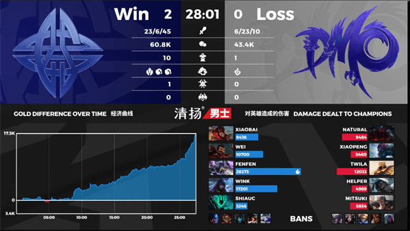 本局比赛Fenfen的卡萨丁打出全场最高输出!