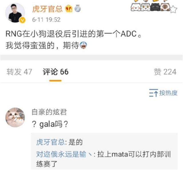 不过,RNG似乎并不满意,如今,LOL大主播爆料说,rng想要引援一位新的adc选手,他就是gala。这位主播的爆料还是比较准确,此前也曾经曝出过rng准备引援阿乐但是失败的消息。