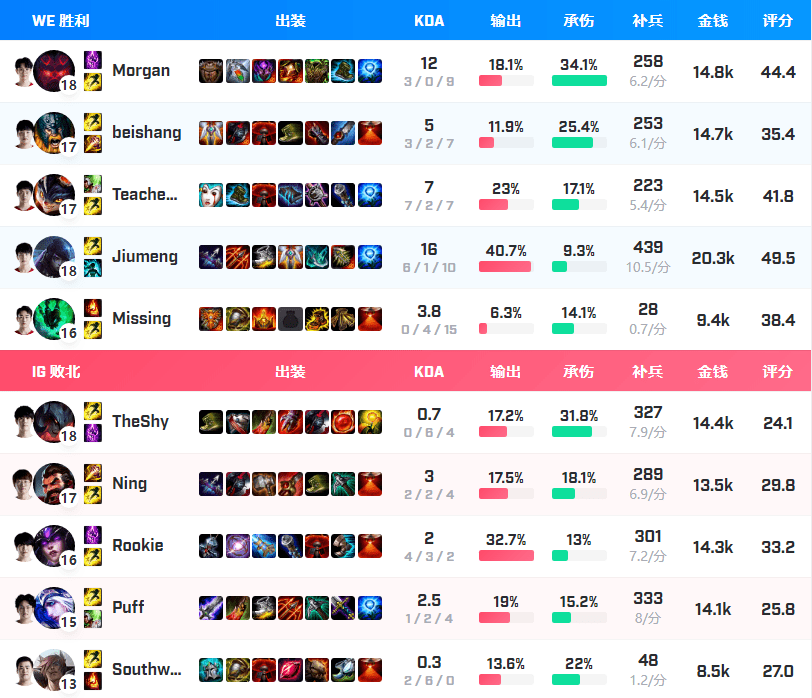 打野ning毫无存在感,Rookie还是“吃草挤奶”。反而WE在战术或者团战上都更加亮眼。IG夏季赛首秀落败,评论区的网友几乎都怒喷选手的操作,甚至还有网友评价:“跟V5研究下咋克隆中单吧”。