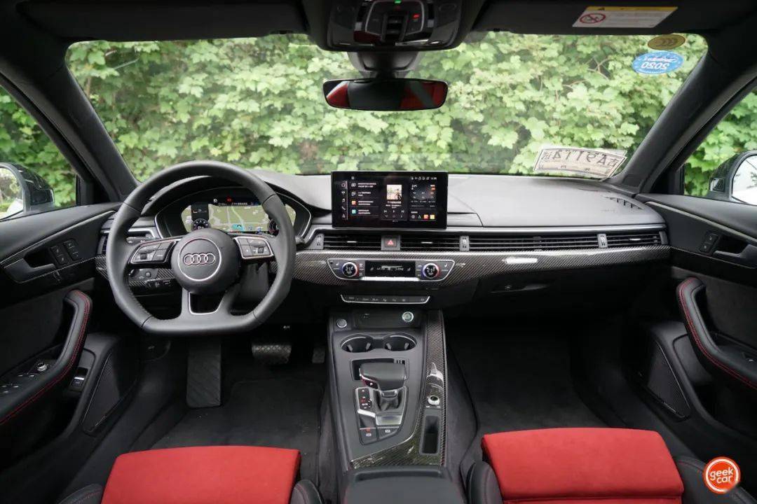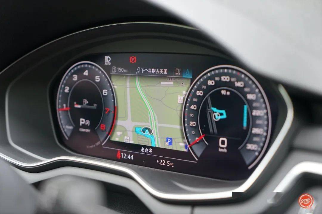 奥迪 A4L 的座舱内有 3 块屏幕:12.3 英寸的仪表盘、10.1 英寸的中控屏,以及一个 HUD。