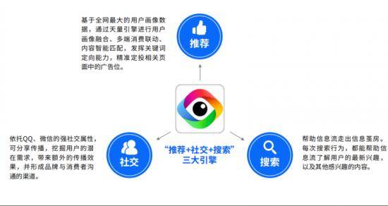 对于腾讯而言,多维的用户触达渠道是优势,也是整合生态的关键。如今,腾讯看点已经登录腾讯QQ、微信、QQ浏览器三大平台,以“推荐+搜索+社交”三大引擎推动的模式直接搭上腾讯的生态巨舰,凝聚成为一股强势的推动力量。