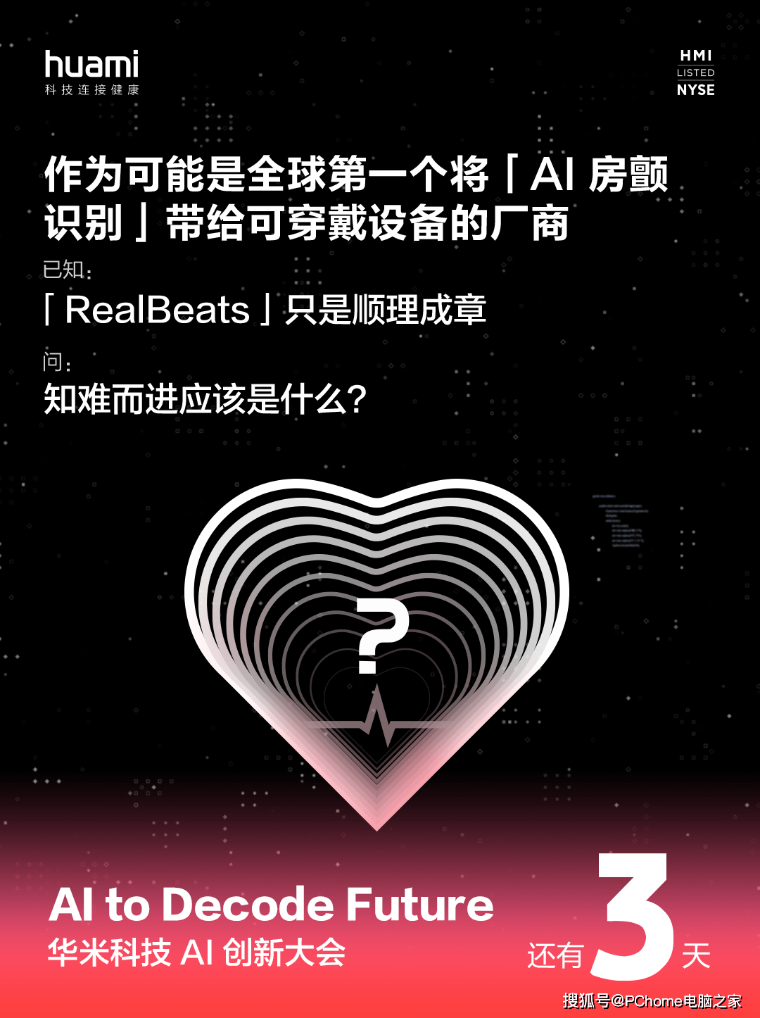华米科技将在6月15日举行主题为“用 AI 解构未来”的AI创新大会,今天其官方微博再次公布了大会的倒计时海报,曝光了华米科技将在RealBeats™ AI生物数据引擎的基础上,推出新的技术功能。随后华米科技副总裁裴帆迪也在微博发表长文,与我们分享华米科技为用户健康所做的努力。
