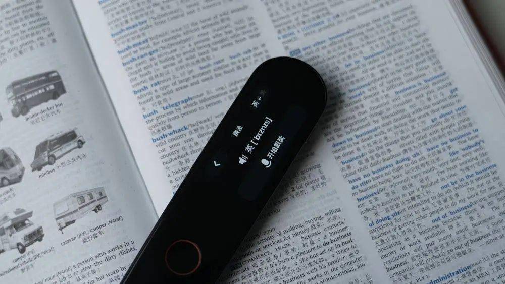 相比起来,有道这款词典笔的使用要容易得多。在开机状态下,拿起来对着文字轻轻一扫,像是用荧光笔划线一样,词典笔就能通过 OCR 技术自动识别上面的文字并给出中英互译结果,大有指哪打哪的顺畅感。扫描一行后的两秒内接着扫描下一行,词典笔还能将两句话上下连接起来,实现印刷品上的整段翻译,哪怕是读英文原著也没有障碍。