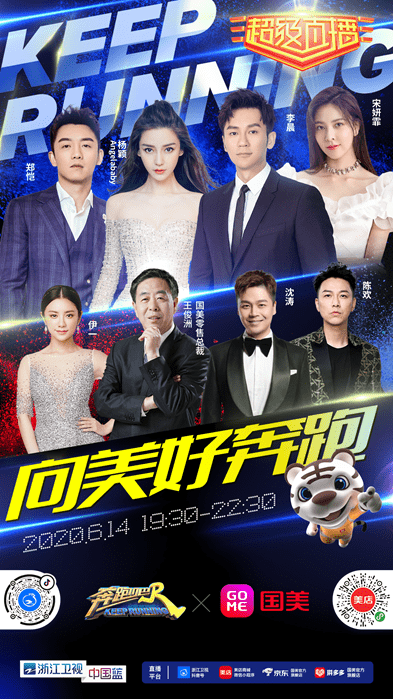 6月14日,浙江卫视爆款综艺节目《奔跑吧》“跑男团”元老级明星将首次合体亮相国美直播间,共同开启综艺直播带货秀。届时,“大黑牛”李晨、“小猎豹”郑恺、Angelababy杨颖三位“跑男元老”与“新生代嘉宾”宋妍霏,以及浙江卫视主持伊一、沈涛、陈欢,国美零售总裁王俊洲将同台battle,上演联袂上演一场集综艺明星、明星主持人、企业总裁为一体的“乐选好物,向美好奔跑”综艺购物直播嘉年华活动,助力国美618。