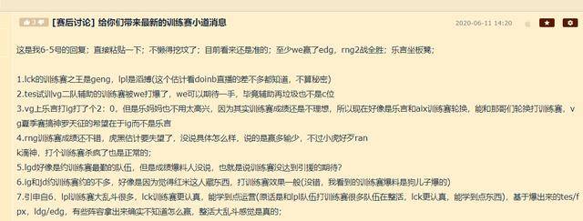 虽然英雄联盟各大战队的训练赛不会公开,但还是有很多内部人员可以得到''小道消息''的。近日有一位在NGA论坛上经常爆料内幕的''知情人''谈到了LPL最近训练赛的事情,引起了不少粉丝的激烈讨论。