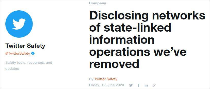 综合美国有线电视新闻网(CNN)、《纽约时报》6月11日报道,推特周四宣布,已经关闭超过17万个所谓“与中国政府有关”的账号,并称他们在“传播有利于中国共产党的地缘政治言论”,因为违反平台操作政策而被删除。