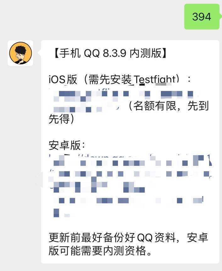 最后,小雷已经准备好了QQ的8.3.9内测版的安装包了,在小雷哔哔对话框回复【394】即可获取下载链接。