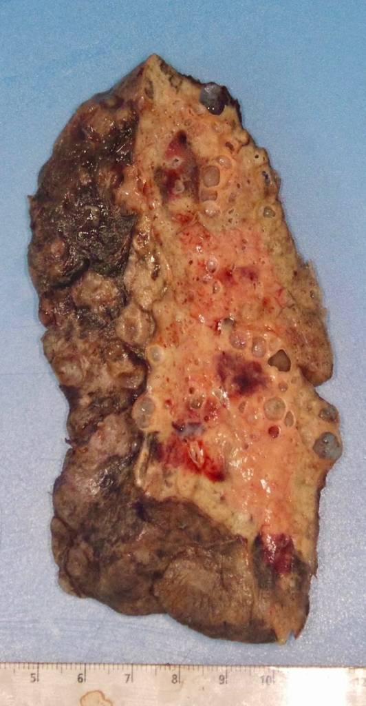 “由于COVID,她在肺部内部形成了这些空腔,这些空腔已经被感染了,这些细菌正在推动败血症的发生,”西北大学的胸外科主任Ankit Bharat博士告诉NPR。随后的图片显示了患者的胸部X光片,它揭示了那些异常空腔的存在(较暗的区域),以及患者的一个受损肺部。