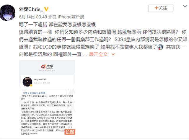 不过,这位回归IG的克里斯教练显然不知道这个约定俗成的规则,回到战队之后,就去看了超话。没想到,有一位粉丝写了千字小作文对他进行评价,上来就是一句:克里斯在s5之前就是战队点餐的。