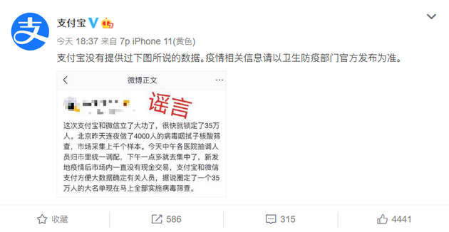 对此支付宝回应称,没有提供过相关数据,疫情相关信息以卫生防疫部门官方发布为主。