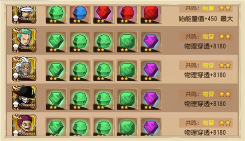 【分析】此阵容由雷利和佐罗提供全场的创伤标记,白胡子和卡塔库栗提供核心输出,罗提供全队生存,配合红色势力号船专属技能提供中排能量加快中排角色大招释放,再加上卡塔库栗能提供物理爆发输出。