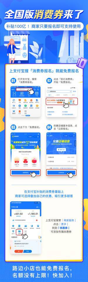 原标题:全国版消费券要来了!支付宝:再小的店都能免费报名 名额没有上限