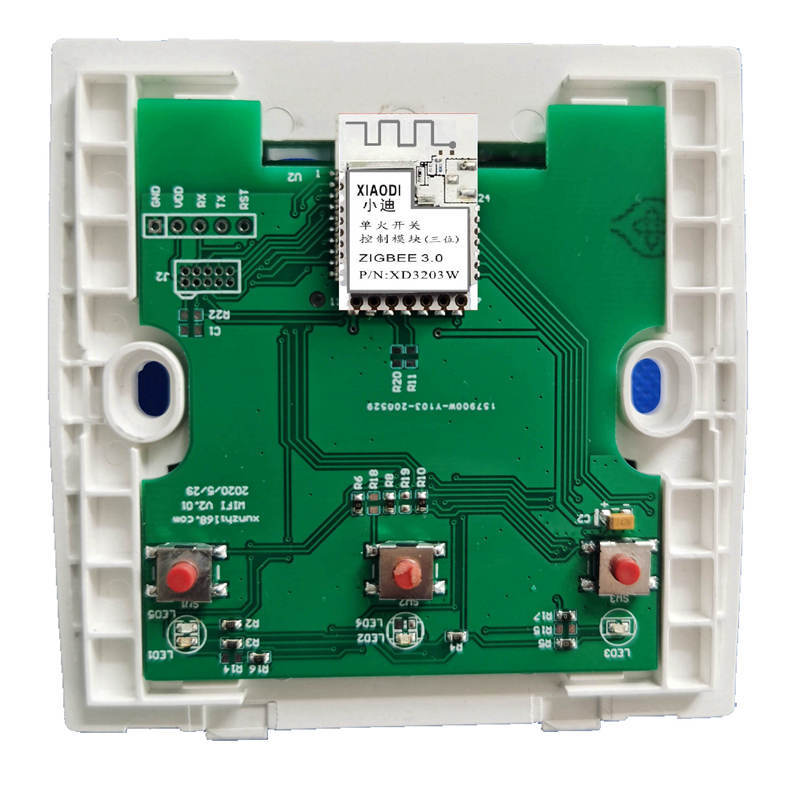 2.单火开关控制板:其核心部件为单火开关Zigbee3.0控制模块,区分1位、2位、3位、4位分别应用于1-2-3-4键单火智能开关。单火开关Zigbee3.0控制模块包括Zigbee3.0模块及其内部集成的控制软件(固件)组成。